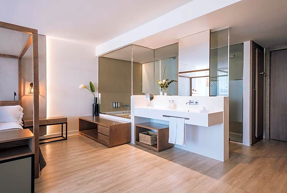 Single-use plastic free room. Free WIFI. Balcony. Double bed (1.35x1.295 ft) or 2 singles. Bathroom separate bathtub and shower and hair dryer. Bathrobes and slippers. Extra bed (80x180). Mini-bar (with cost) and Coffee maker. Smart TV 55" Air-conditioning. Safe and Telephone.